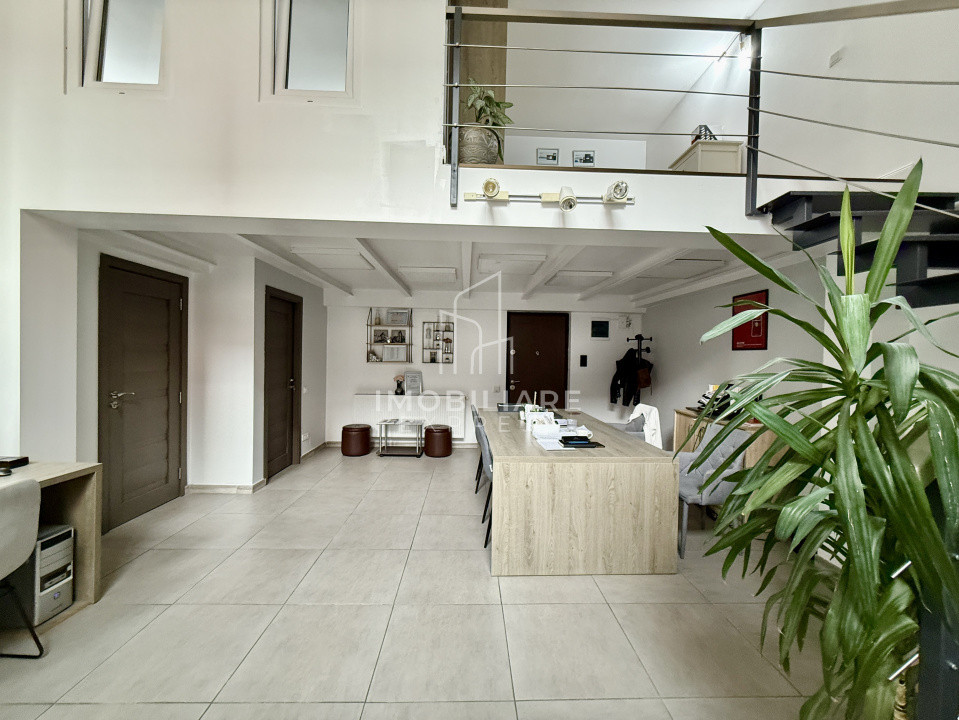 *. Proprietatea este dispusă pe două niveluri (parter + supantă), având o înălțime generoasă de 5 metri și o suprafață utilă de 71,89 mp, completată de o terasă de 25,38 mp – cu posibilitate de amenajare a două locuri de parcare.