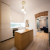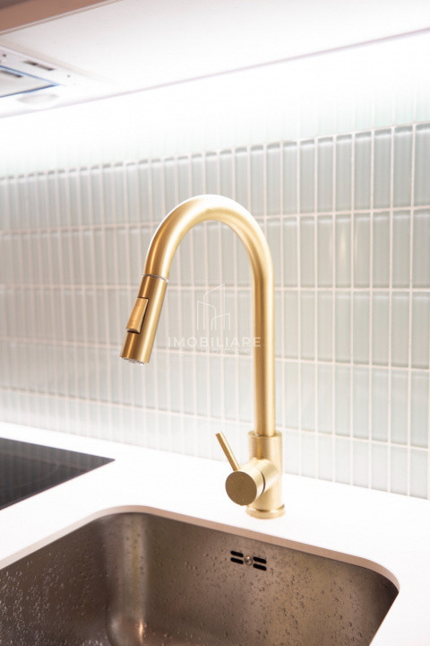 Apartamentul se vinde parțial mobilat, incluzând mobilierul de bucătărie și biblioteca din living.