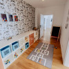 Apartamentul se remarcă printr-o amenajare contemporană, cu mobilier realizat pe comandă și materiale de calitate superioară.