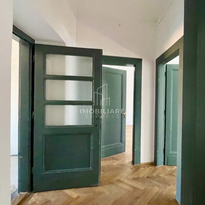 Proprietatea păstrează farmecul autentic al apartamentelor de odinioară: parchet din lemn masiv, tavane înalte de aproximativ 3 metri, încăperi spațioase de peste 20 mp și ferestre mari care asigură o lumină naturală excelentă pe tot parcursul zilei. În același timp, beneficiază de confort modern, fiind dotată cu centrală termică proprie, două băi și jaluzele exterioare, ideale pentru controlul luminii și al confortului termic.