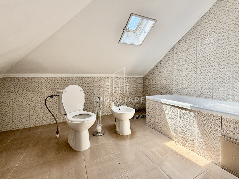 Mansardă: dormitor matrimonial cu baie proprie (cadă)
