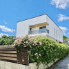 Această locuință impresionează încă de la prima vedere prin arhitectura sa modernă și liniile curate, completate de materiale naturale și accente calde de lemn. Amplasată pe un teren generos, cu două grădini însumând aproximativ 400 mp, oferă spațiu, lumină și intimitate — într-un stil contemporan care îmbină estetica și funcționalitatea într-un mod exemplar.