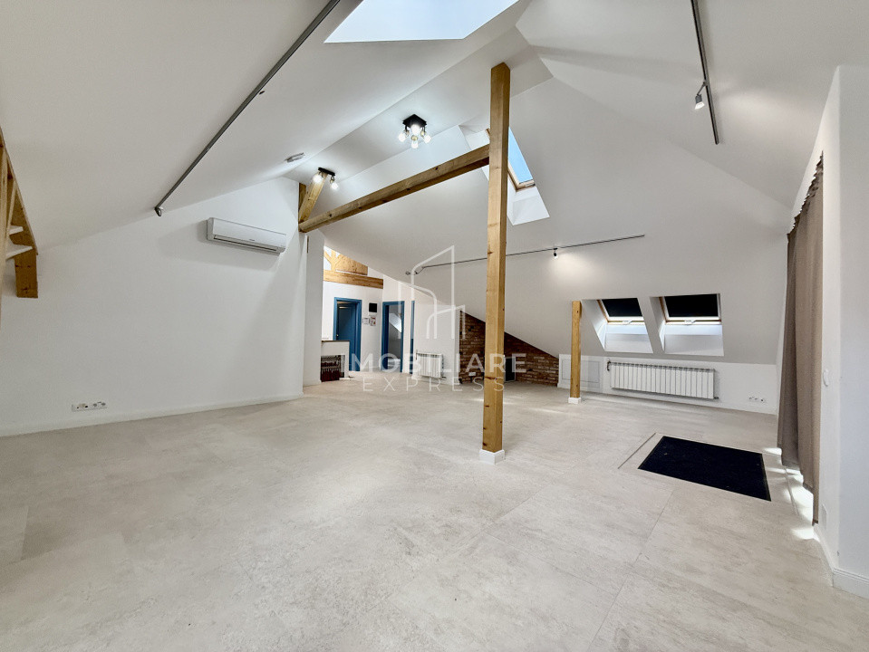 • Open space de 80 mp, perfect pentru echipe creative, săli de conferințe, coworking intern, zonă de training sau departamente care lucrează colaborativ