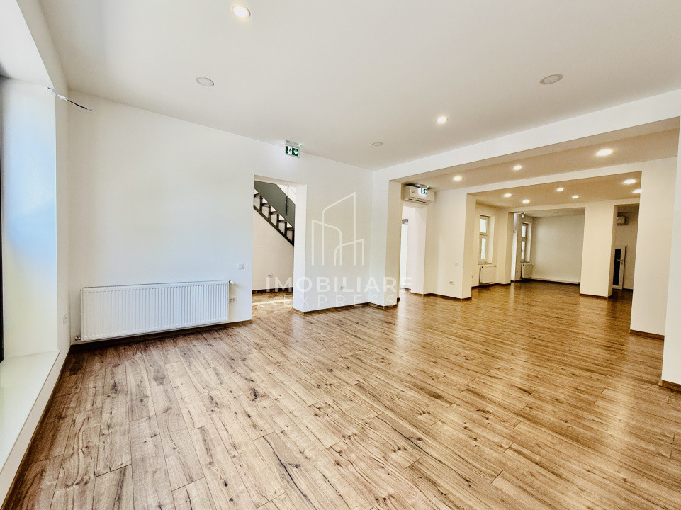 Vă prezentăm un imobil cu adevărat special, dispus pe Subsol + Parter + Mansardă, ideal pentru o gamă largă de activități comerciale sau de birou. Situat în inima orașului, în zona Piața Avram Iancu, acest spațiu recent renovat se remarcă prin finisaje moderne, realizate cu materiale premium, și o vitrină generoasă cu vizibilitate excelentă.